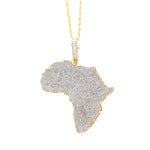 Celebrate heritage and style with this striking 10K Yellow Gold Africa Map Pendant, expertly crafted and fully iced for maximum brilliance. The iconic outline of the African continent is meticulously pavé-set with shimmering round diamonds, creating a bold, radiant surface that catches light from every angle.