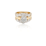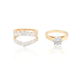 The matching diamond wrap enhancer frames the solitaire with two rows of shimmering round brilliant diamonds, creating added depth and brilliance when worn together. Designed to sit seamlessly around the center ring, the enhancer instantly transforms the look from classic to statement while allowing each piece to be worn separately.
