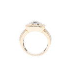 The halo-style top adds extra sparkle, while the wide gold band delivers a strong and confident look. Perfect for special occasions or everyday luxury, this ring embodies elegance, strength, and timeless sophistication.