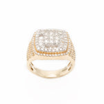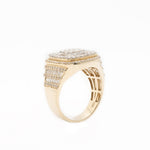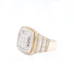 Elevate your style with this luxurious Diamond Men’s Ring, expertly crafted in 10KT yellow gold and set with a stunning 2.20 carat total weight of dazzling diamonds. This sophisticated piece features a bold square-shaped top, beautifully designed with a mix of round brilliant and baguette-cut diamonds arranged in a captivating multi-layered pattern.